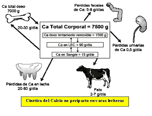 Na vaca que já está parida a muito tempo o cálcio que falta no sangue geralmente vem dos ossos, mas na vaca amojando ele normalmente vem só da alimentação.