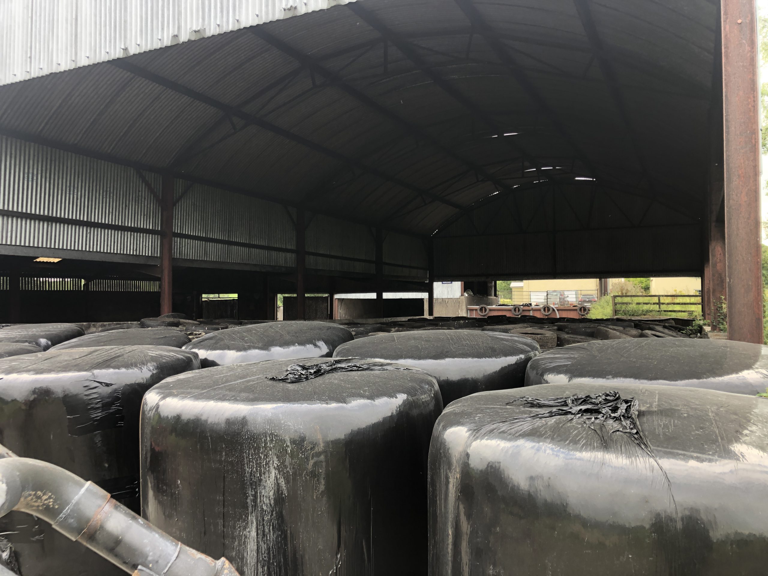 Na fazenda são feitas duas covas de silagem, uma para o primeiro corte e outra para o segundo corte. O primeiro corte geralmente é feito no início de junho e o segundo corte é feito no início de agosto. 100 fardos de silagem e feno são feitos durante o ano também a partir de piquetes e prados excedentes.