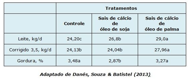 O óleo de palma apresenta mais de 50% de gordura saturada, que por não apresentar duplas ligações, afeta de maneira mínima a biohidrogenação e consequentemente proporciona aos animais uma produção de leite pela glândula mamária adequada. Mais uma vez observa-se como o aumento de óleos e gordura ricos em ácidos graxos poli-insaturados pode comprometer o teor de gordura no leite, principalmente em dietas típicas brasileiras.