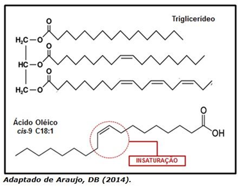Figura 2. Exemplo de triglicerídeos e de ácido graxo insaturado.